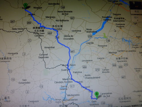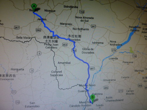 波尼多 - 伊瓜蘇瀑布約780公里.走163國道.