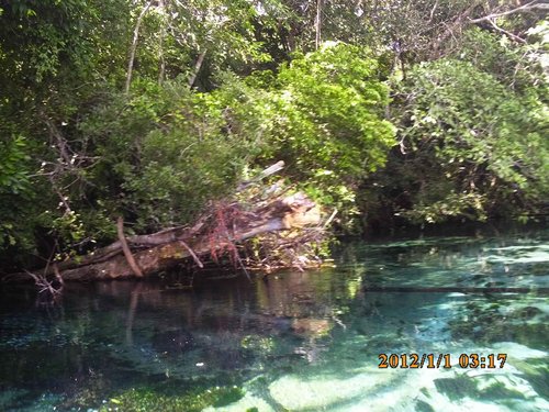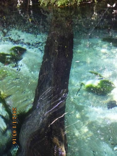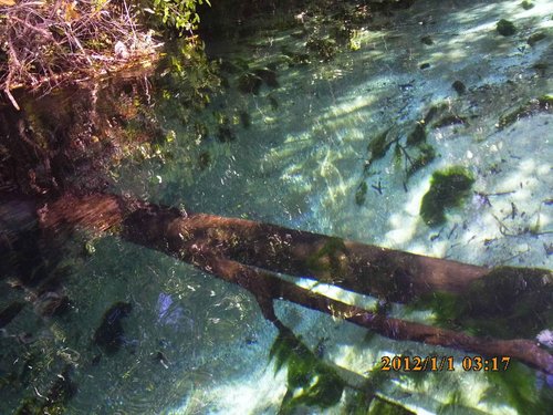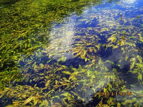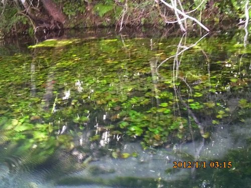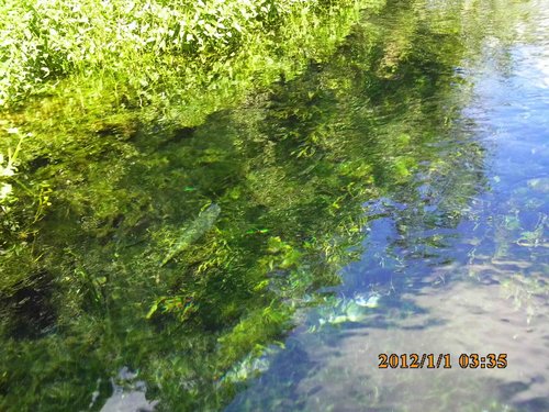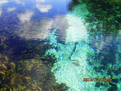 不可思議的水,清澈見底,在陽光的照射下,映著樹影,