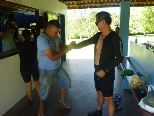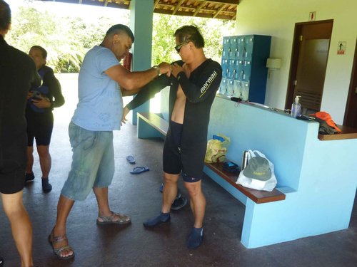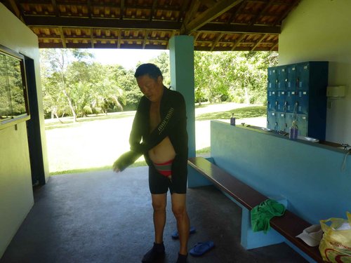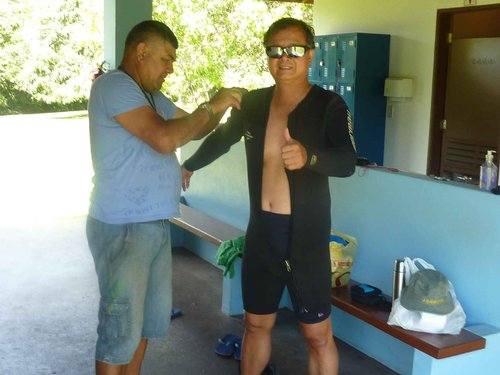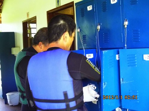 接下來著裝,換上潛水衣,將個人衣物放在保險箱.
