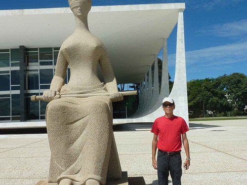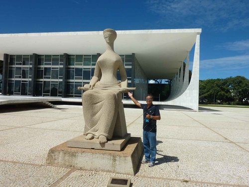巴西聯邦最高法院。大樓前的人像雕塑手握利劍蒙目端坐,