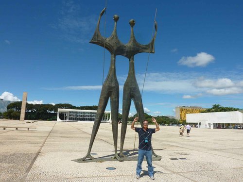 人持矛並肩而立的首都開拓者銅像,象徵著巴西人民團結一心
