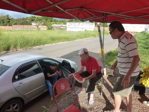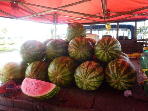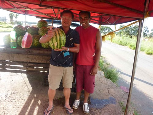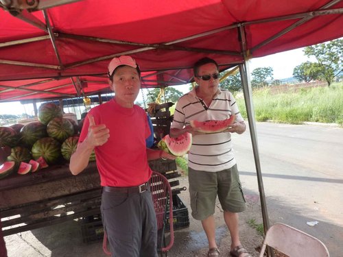 路邊看到又大又紅的西瓜,我們當然不會錯過.
