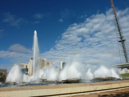 高塔.噴水池.彩虹編織成一幅美麗的圖畫.