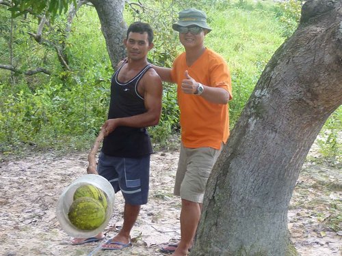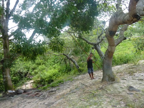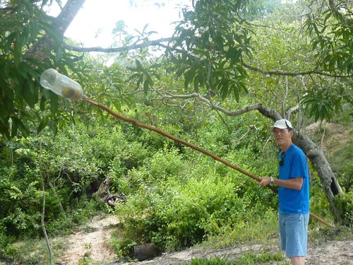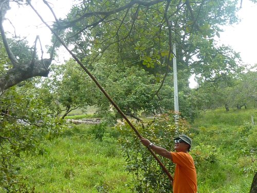 希卡多很聰明,今天他教我們一招採芒果的好方法.