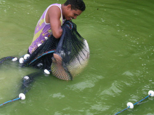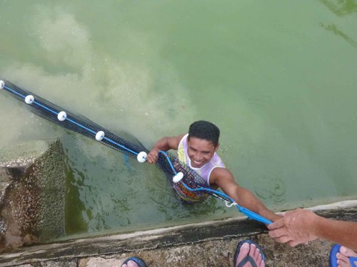 這一條大概有25公斤左右.瓦內說,另外一個池裡有2條