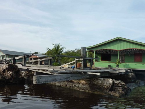 因為時常有洪汛,所以房屋都建在浮動的巨木上,這樣就不用怕被水淹沒了.