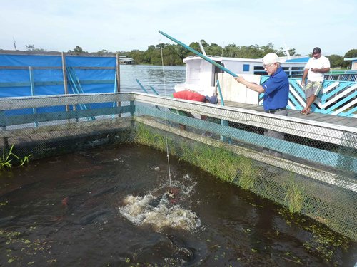 釣一次象魚5元巴西幣,給你5條魚餌.只要能釣上來,就可免費帶回去.