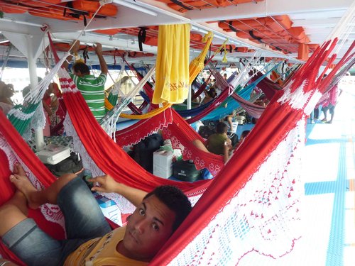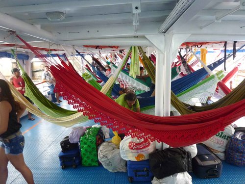 五顏六色的吊床好漂亮.雖然船票很便宜,不過要有心理準備.這是睡覺