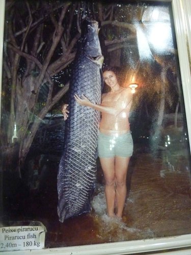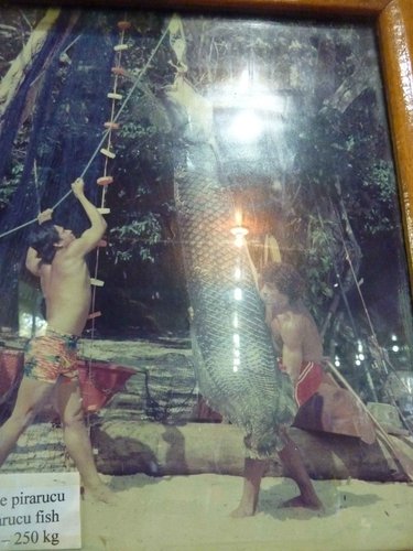 樹屋 藝品店裡展示了土著捕獲亞馬遜河裡的象魚相片,有250公斤重.
