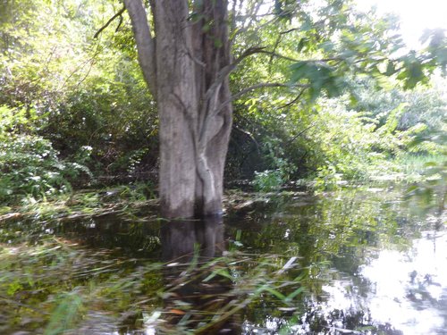 米藍達 Miranda 小心的開著船,避免馬達被草纏住.