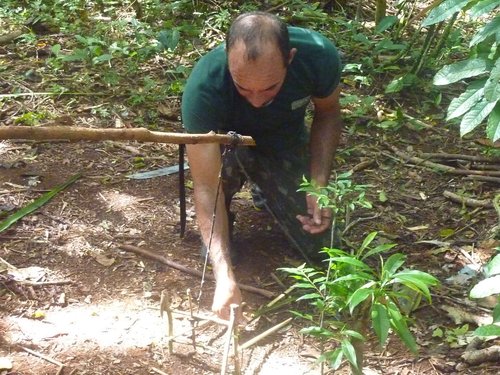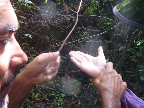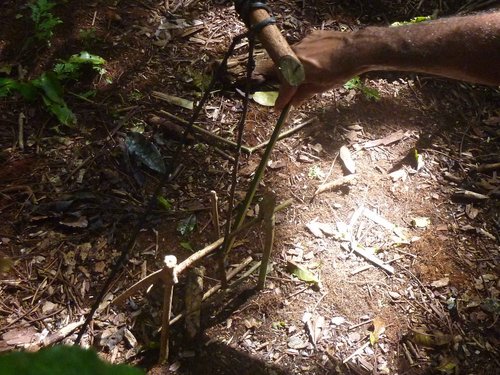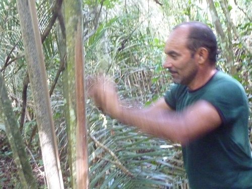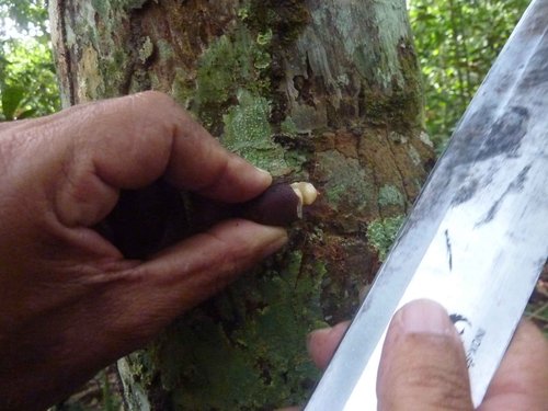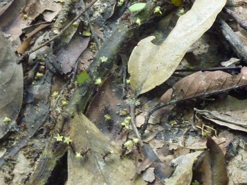 在雨林不要亂席地而坐,這棵樹下就是毒蟻窩喔.小心被咬了.