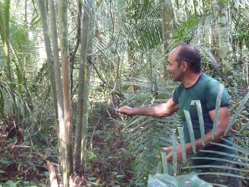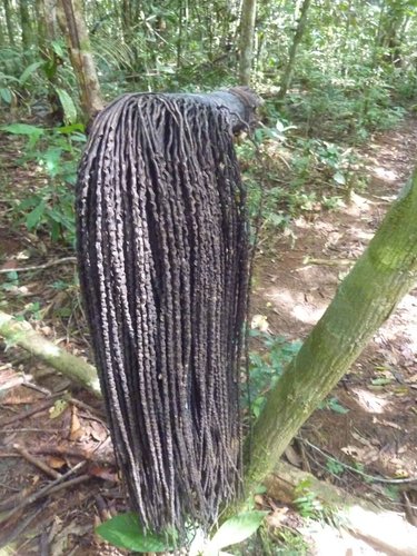 貼心的船夫馬歇爾 趁我們雨林探險時,用棕梠葉幫我們編織了, 大祭司冠和亞馬遜女王冠.