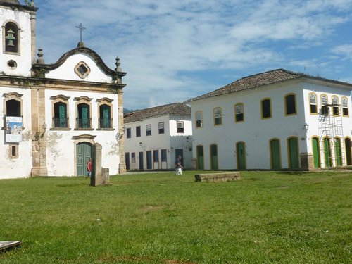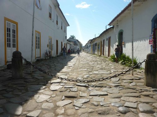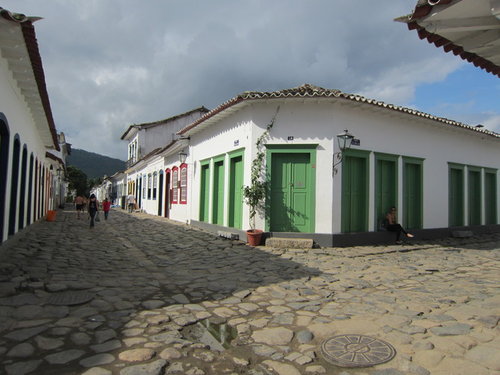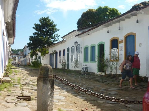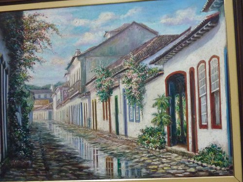 paraty城裡散佈著葡萄牙殖民時代色彩鮮豔的住宅、各式各樣的藝術畫廊、手工藝品小店。而且,這些古樸的民居被塗上了五顏六色的濃彩,但色彩搭配的卻是那樣協調美麗,放眼望去,就像一幅幅色彩斑斕的水彩畫。