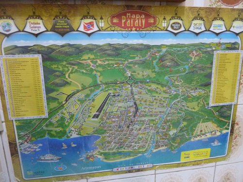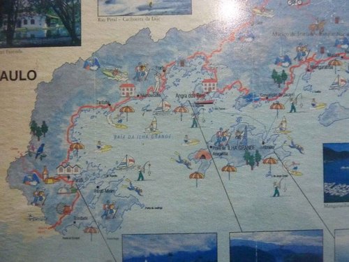 從地圖上看,Paraty主要有三個半島,最北的海岸線最曲折,只能乘船到達,中間的有一個著名的Paraty Mirim海灘有車行土路,南邊的半島最大,汽車可以進入一小段,之後就是穿越雨林的小徑,可探訪十幾個海灘。