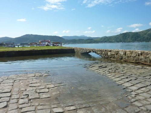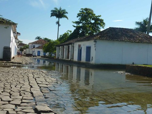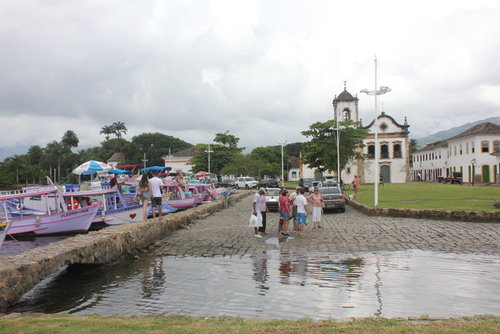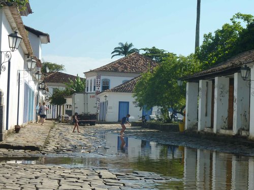石橋左右是相通的,也就是小鎮的石子路和大海直通。據說月圓漲潮的時候,海水會灌入街道,而退潮時,海水也跟著退去,用這種方法,古時的paraty人用海水一年數次清洗著這個城市的街道。所以,paraty也有巴西的“威尼斯水城”的美稱。