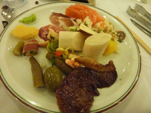 早知道有那麼豐盛的美食,我在機上就不要吃晚餐,害我這餐吃沒多少