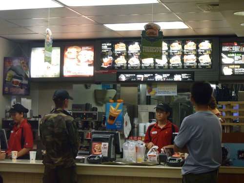 回旅館還了衝浪板,盥洗後,兒子想吃麥當勞,我這孝子只好覆議了。