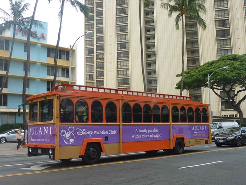 坐雙層觀光巴士. 觀光叮噹車(Waikiki Trolley如果持有JCB信用卡