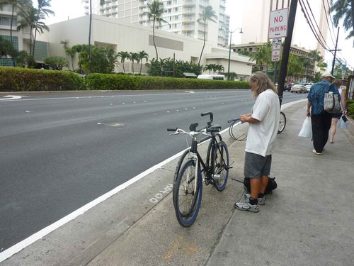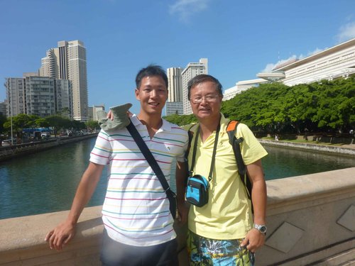 就穿著花俏的沙灘褲滿街跑,一點都不覺得突兀.只有兒子說爸爸