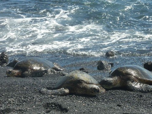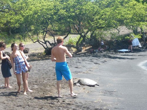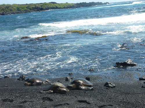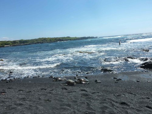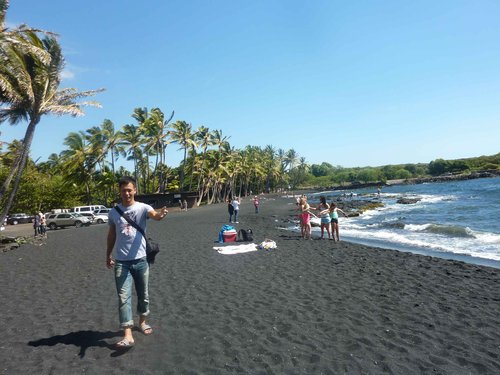 今天的第一站就是參觀著名的黑沙灘Punaluu Black Sand Beach Park。