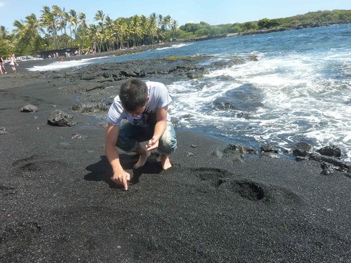 一般常見的沙灘有黃色,白沙灘但夏威夷大島有一個著名的黑沙灘,