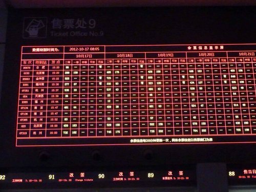大型電子看板顯示各班次火車的時刻及空位,讓人一目了然.