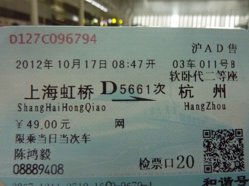 南京東路站搭地鐵2號線到虹橋火車站搭動車到杭州.(約30分鐘)