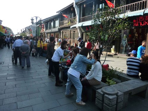 大陸人對台灣很好奇又熱絡,一路告訴我們杭州旅遊的資訊.