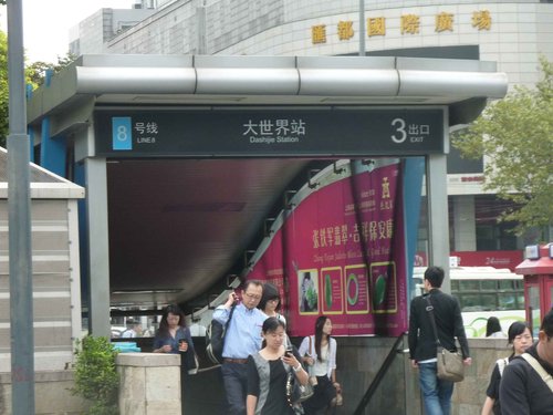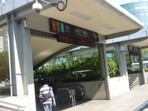 人民廣場站 1 號出口 (往延安路方向) > 過天橋 (下右轉人行道) >