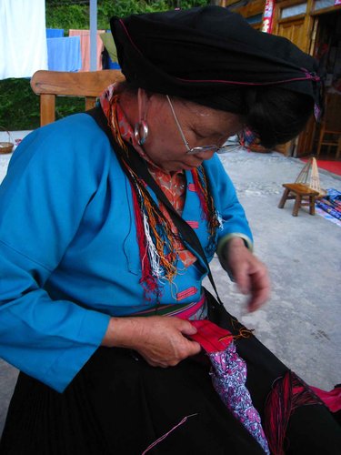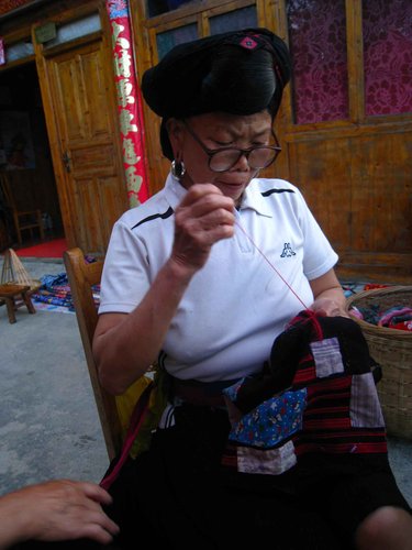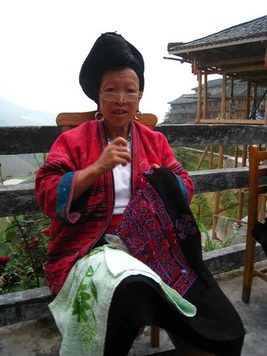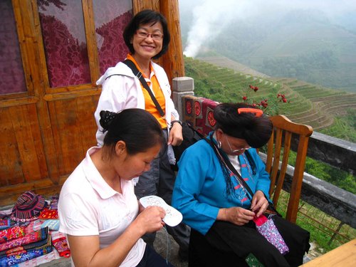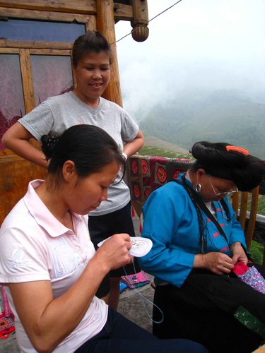 紅瑤婦女勤勞又能繡善織。農閒時一早就開始忙著手工刺繡、賺補家用。
