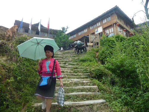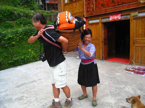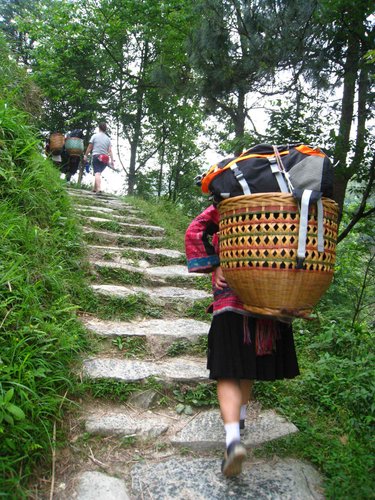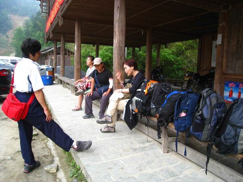 上山時幫我們背行李的瑤族婦女,怕我們下山了沒錢賺,