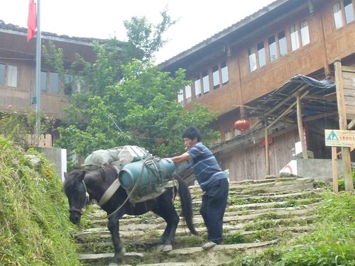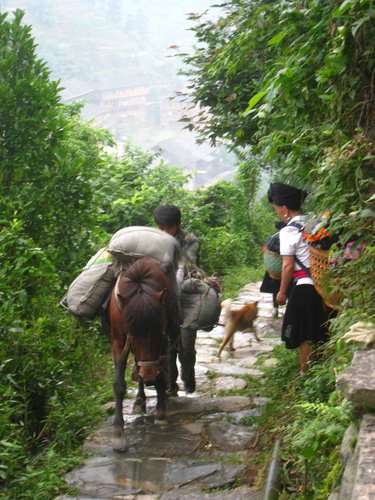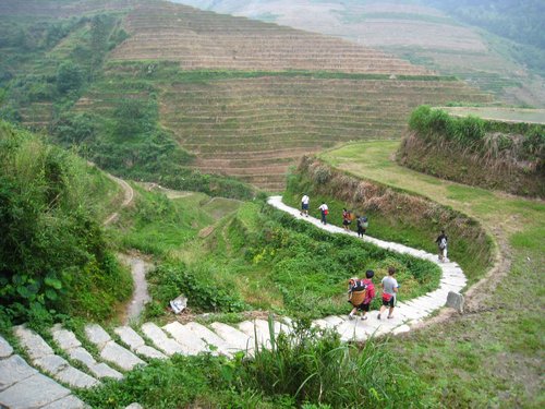 順著石塊鋪成的山間小路,邊走邊腑視四周的梯田,不得不感歎這裡