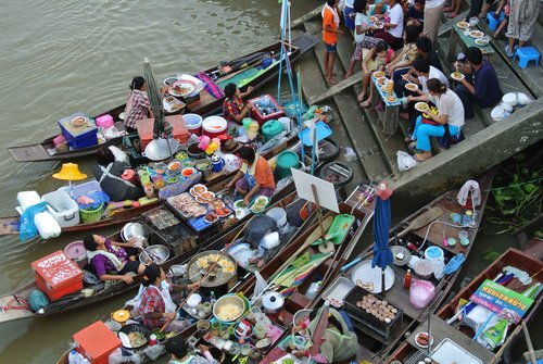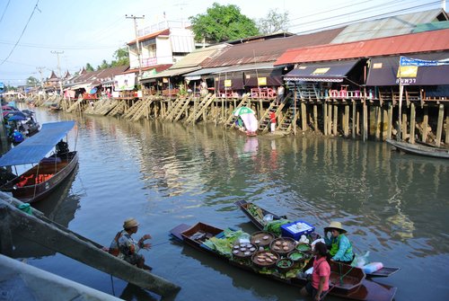 泰國著名的水上市場有兩個,一個是Damnoen Saduak,屬於早上的市集。