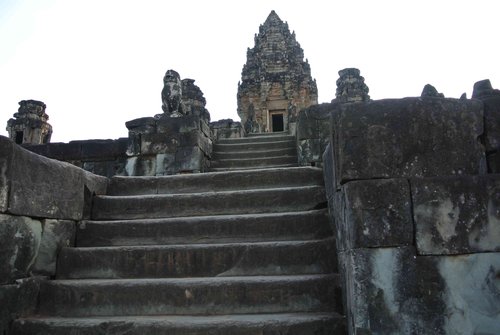 巴公寺(Bakong)。這裡是吳哥王朝遷都吳哥地區之前的都城,建於8世紀。