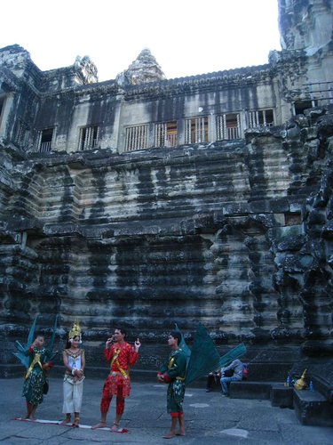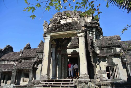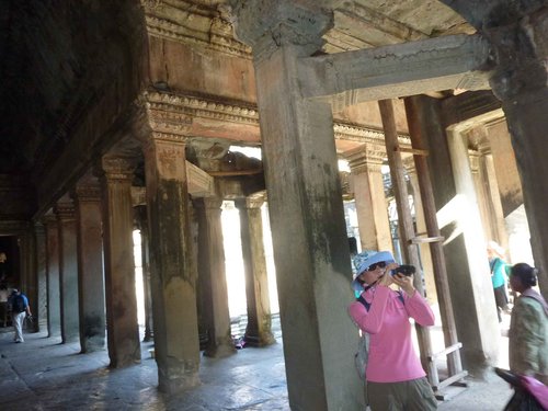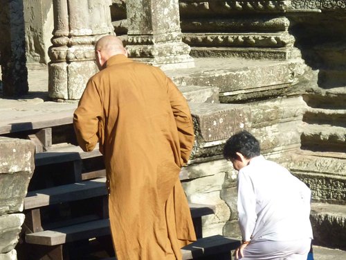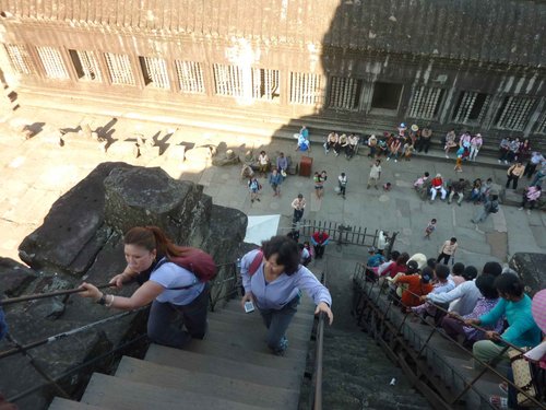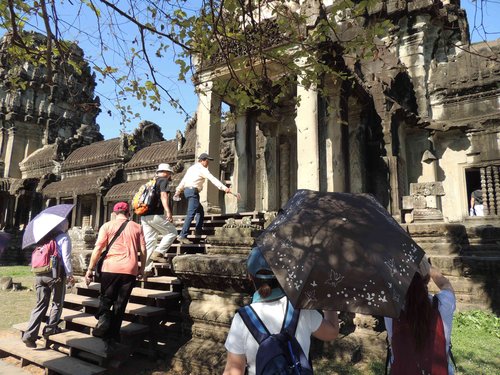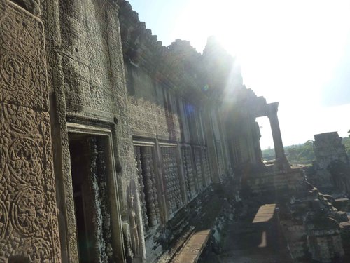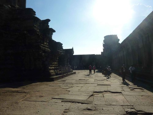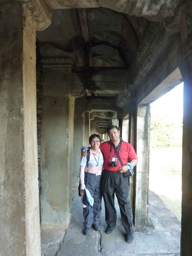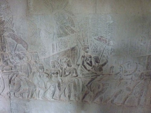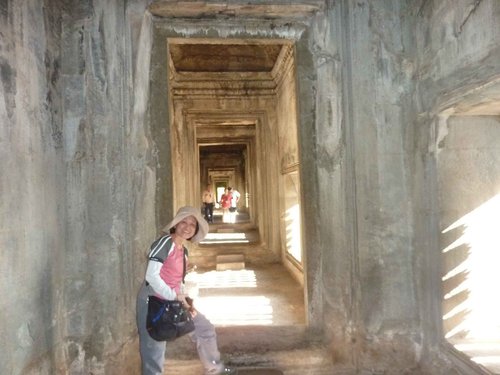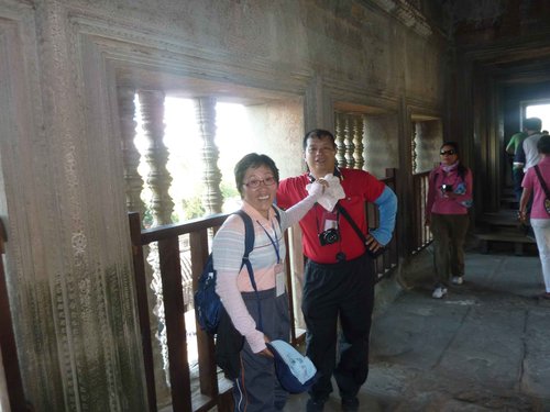 走上台階,我們準備進入參觀吳哥窟舉世聞名的長廊浮雕。總長