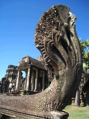 長道,走過有七頭蛇( Nagas )石雕橫亙的護城河,然後再通過近五百公尺