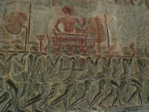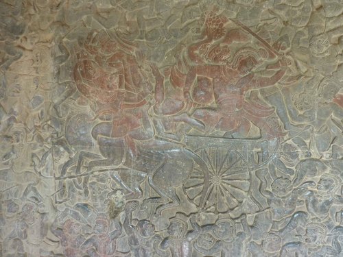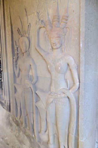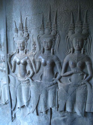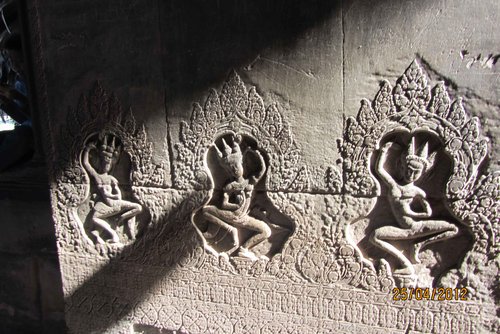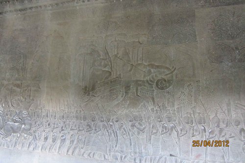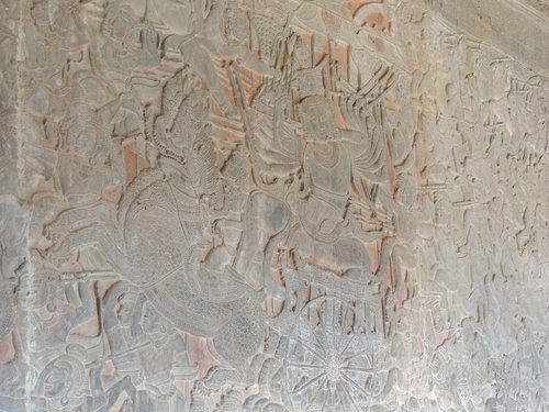 吳哥窟主體建築共分三層,在第一層外四面的長廊,左右兩翼的牆上