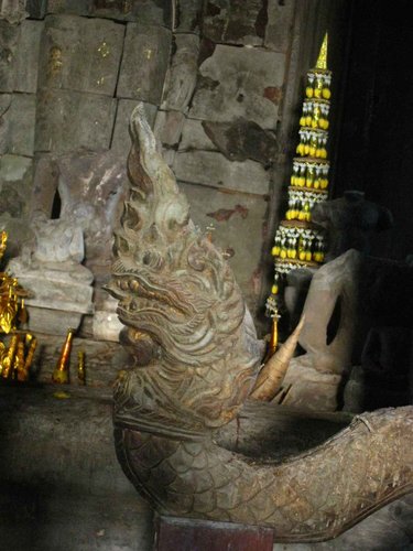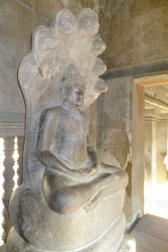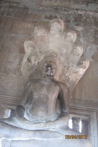 七頭蛇神的圖騰也隨處可見。柬埔寨是信仰蛇神的國家,傳說五頭蛇