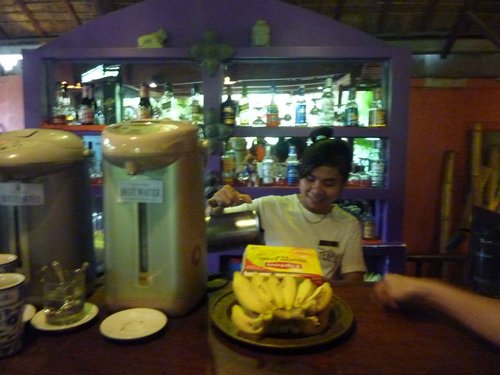 民宿餐廳提供24小時免費的咖啡、紅茶及香蕉(應該是芭蕉).