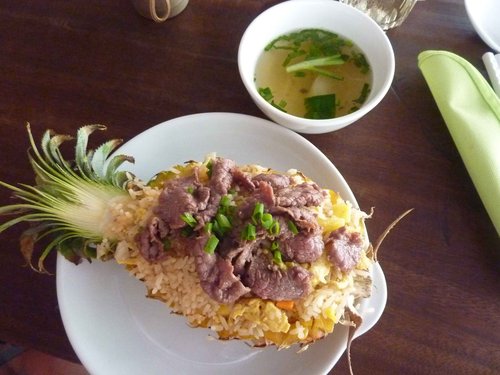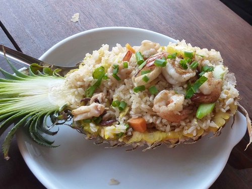 這道鳳梨海鮮炒飯色.香.味俱全才1.5美元(不到45元台幣)