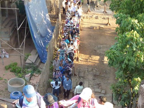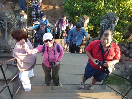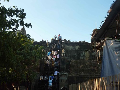 但廟宇頂部的平臺可從高處遠眺吳哥窟。每逢晴天的黃昏日落時分,