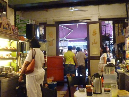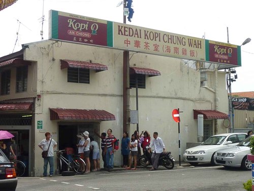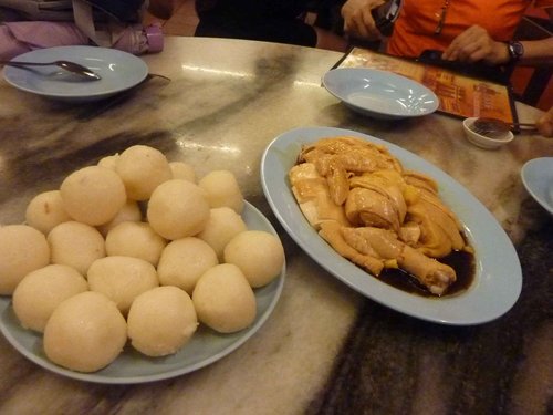 它是店面最小、店齡最久的老店。除了招牌海南雞之外,就只有雞飯團,由大粒飯團逐漸縮小為飯圓。以吃過中華茶室的經驗談,老闆剁雞的手從營業開始就沒停過,連客人點菜都沒時間做出回應,因為店裡只有海南雞與雞飯團,簡簡單單的做法;卻突顯它不平凡的味道,通常一盤雞飯團只有5顆,再搭配一盤海南白斬雞與特製的蘸醬〈老抽、薑泥、桔醬〉而已。