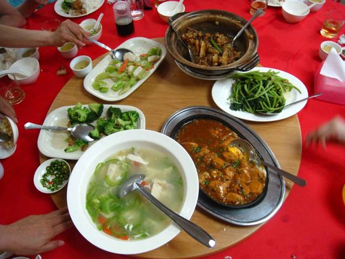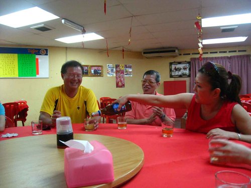 奇怪,還沒喝臉就紅成這樣了.呵呵.