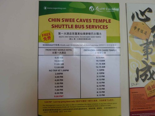 上山前深怕雲頂是觀光區消費會很貴,因此在瓷廠街就先買好了午餐。(其實雲頂是賭場,為了吸引賭客吃.喝都很便宜又多,所以上山不必準備吃的東西) 。中午在第一飯店門前休息區吃午餐時,和一對馬來西亞夫婦閒聊,他們建議我們可搭免費搭接駁車去清水岩廟參觀,因此在下午14:00大夥約好的會面面時間和包車師傅協商,師傅很不錯,答應免費帶我們去走走,因此今天又多參觀了一個景點(自助旅遊多看多聊,時常會有意外驚喜) 。