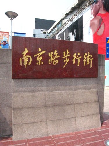 南京路步行街的東西兩端均有一塊由江澤民親筆題寫的暗紅色 大理石塊,上面寫有「南京路步行街」六個大字。