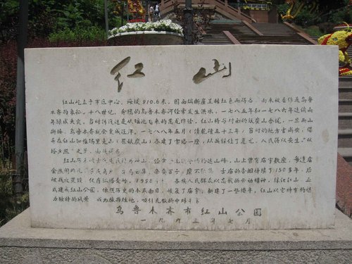 紅山是新疆烏魯木齊的標誌和象徵,海拔高910.8米,由紫色砂礫岩構成,呈赭紅色,故得“紅山”一名。登上紅山頂,可遠眺天山柏格達雪峰,鳥瞰烏魯木齊市容市貌。紅山公園景區以歷史悠久、風景優美、標誌鮮明、有綜合遊覽功能而深受遊客喜愛,是中外遊客必遊之地。