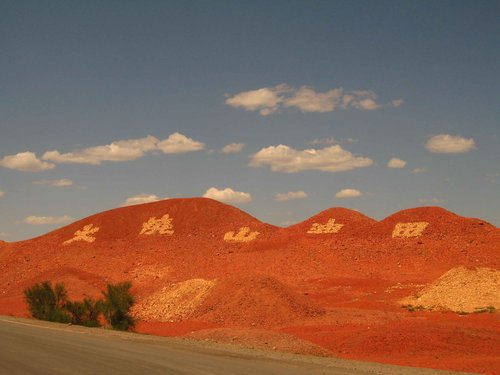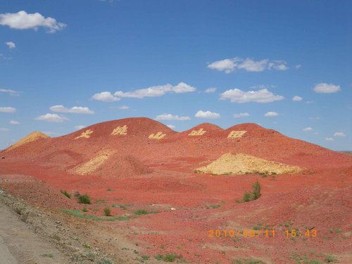 火燒山,一個地名,因為該地的很多小山丘顏色火紅,因此得名,另外該地有個油田,叫火燒山油田,其入口距五彩灣鎮18KM,是去五彩城的必經之路;