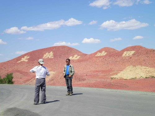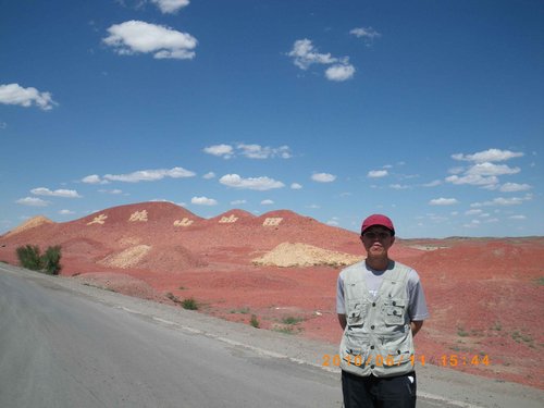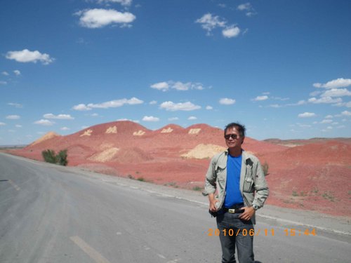 到五彩灣還要再往前30幾公里,然後再回頭,來回就要花1個半鐘頭。大家覺得到新疆已看了拜城五彩山,布爾津五彩灘,以及沿路五顏六色的奇山,因此提出不進入五彩灣直接回烏魯木齊的建議。看到大多數人心意已決,我這領隊如一意孤行一定會被K的很慘,只好妥協。