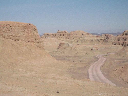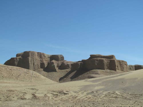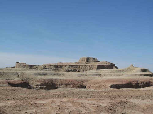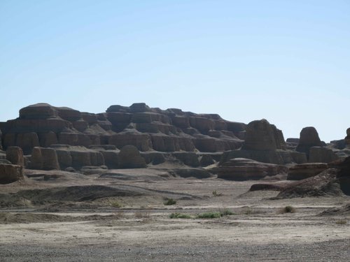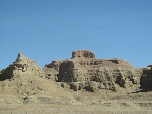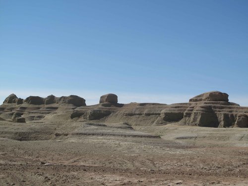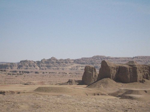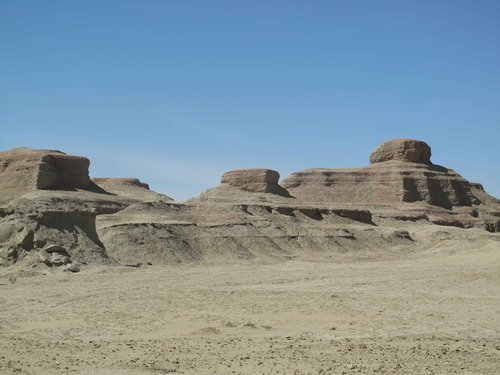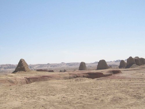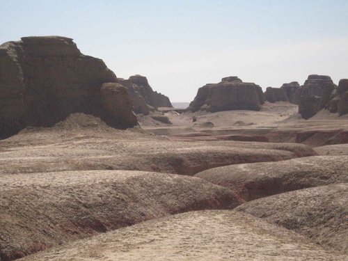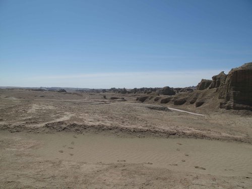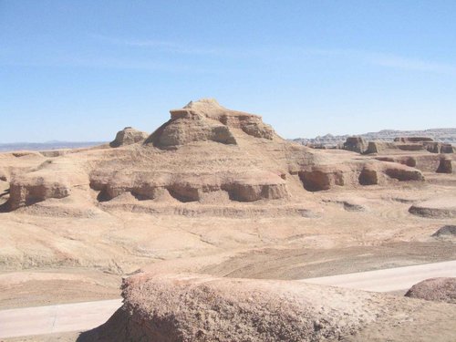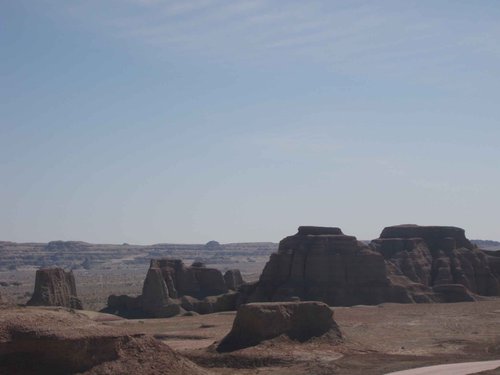 白天的魔鬼城景觀平淡無奇,四周的土墩與沙丘