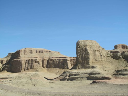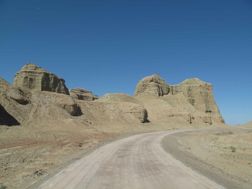在這魔鬼城裡,風力侵蝕下的雅丹地貌很有大漠悽涼的感覺…或許就是這股悽涼感讓導演相中,許多知名的戲劇都在這兒取景,諸如「冰山下的來客」、「魔鬼城之魂」、「七劍下天山」、「淘金王」、「蘇武牧羊」、「西聖地」…最有名的就是李安的「臥虎藏龍」了,那場玉嬌瓏與小虎在馬背上追逐的戲碼也是在這兒拍攝的…